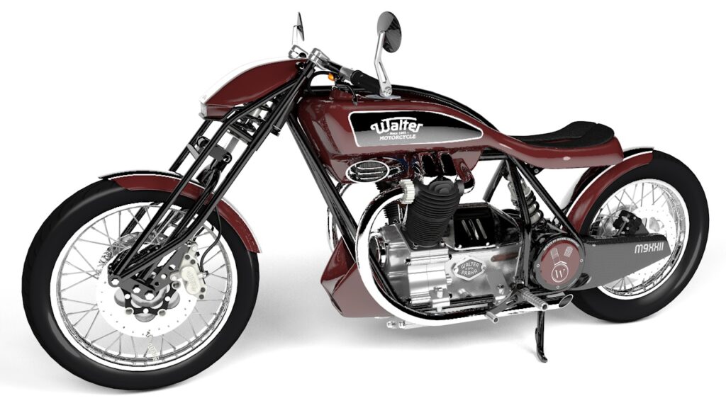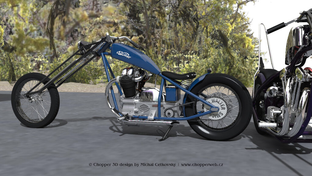 Tento koncept se moc neliší od projektu Walter-Guzzi M922. Ovšem na popud několika komentů o neautentičnosti Walter motoru ve stavbě mě napadlo použít letecký motor Walter Polaris okolo roku 1930, tedy jeho válce a nasadit je na starý základ M922. Vznikl tak litrový velký motor a do konceptu pěkně sedí. Nápadů není nikdy dost.