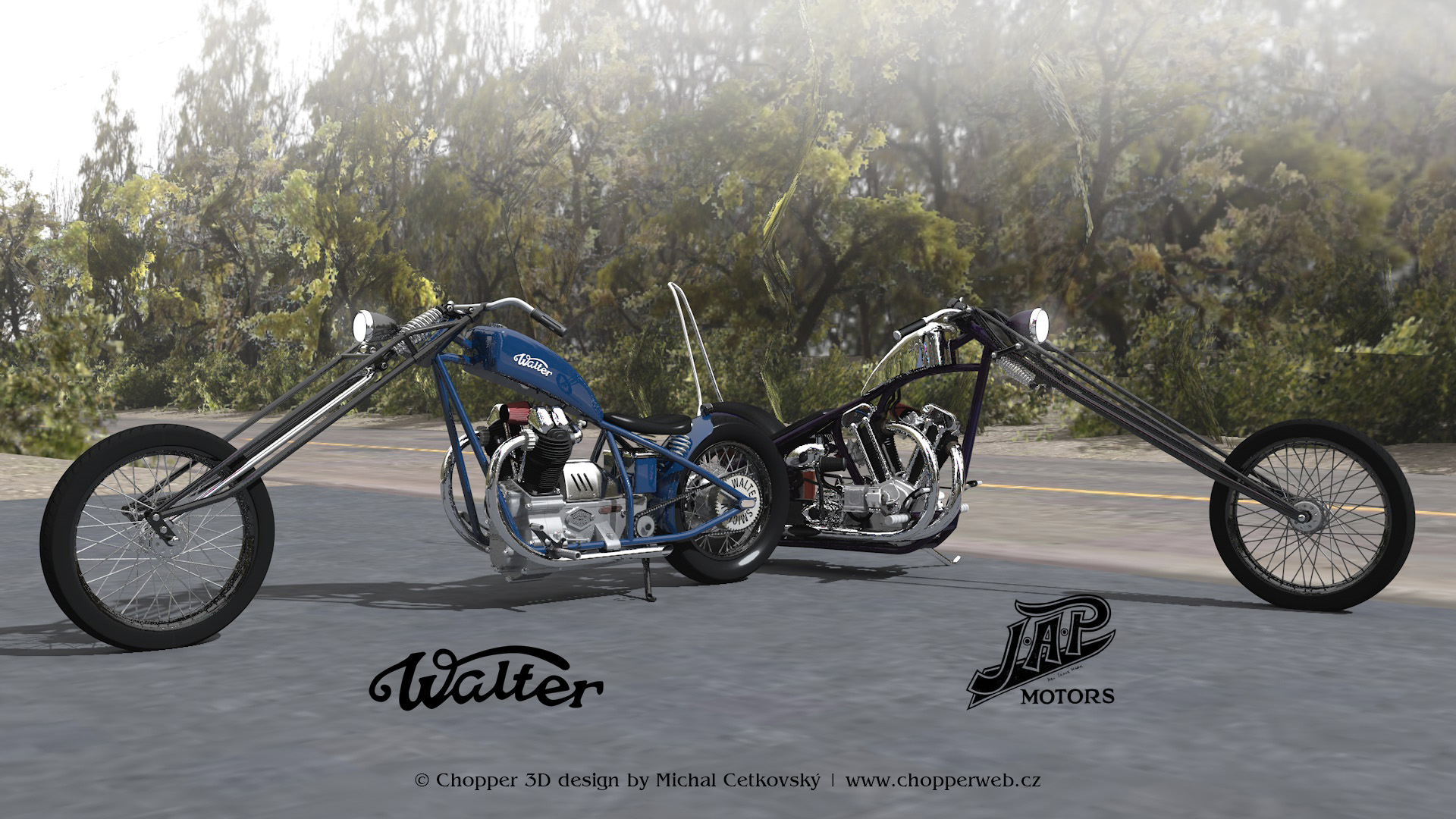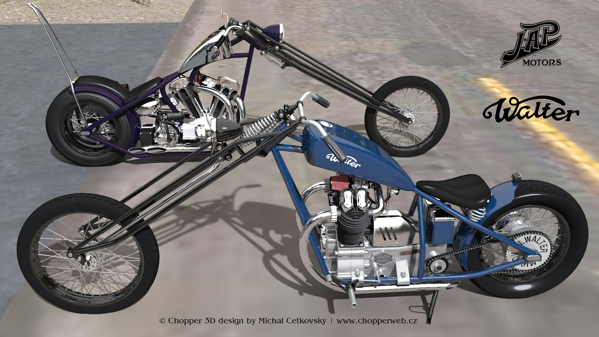 Tento koncept se moc neliší od projektu Walter-Guzzi M922. Ovšem na popud několika komentů o neautentičnosti Walter motoru ve stavbě mě napadlo použít letecký motor Walter Polaris okolo roku 1930, tedy jeho válce a nasadit je na starý základ M922. Vznikl tak litrový velký motor a do konceptu pěkně sedí. Nápadů není nikdy dost.